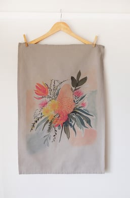 100% Cotton Tea Towel - 'Brushy Banksia' - Natural